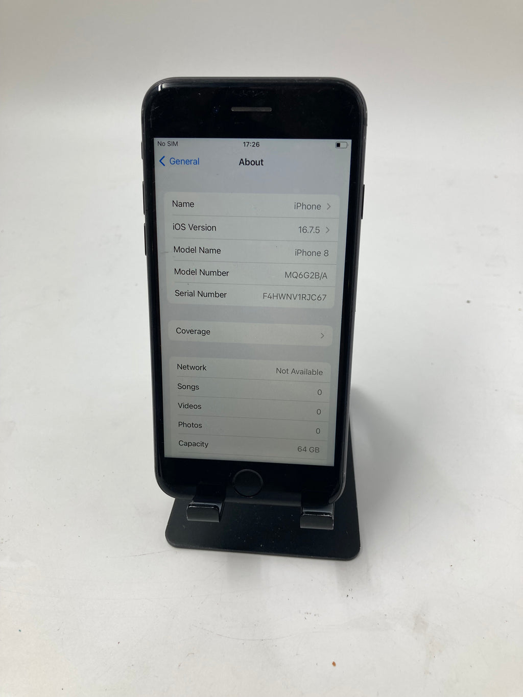 1x Apple iPhone 8 A1905 64GB Grey - Battery Health 87%. Light Markings. Sim Locked. 00049836