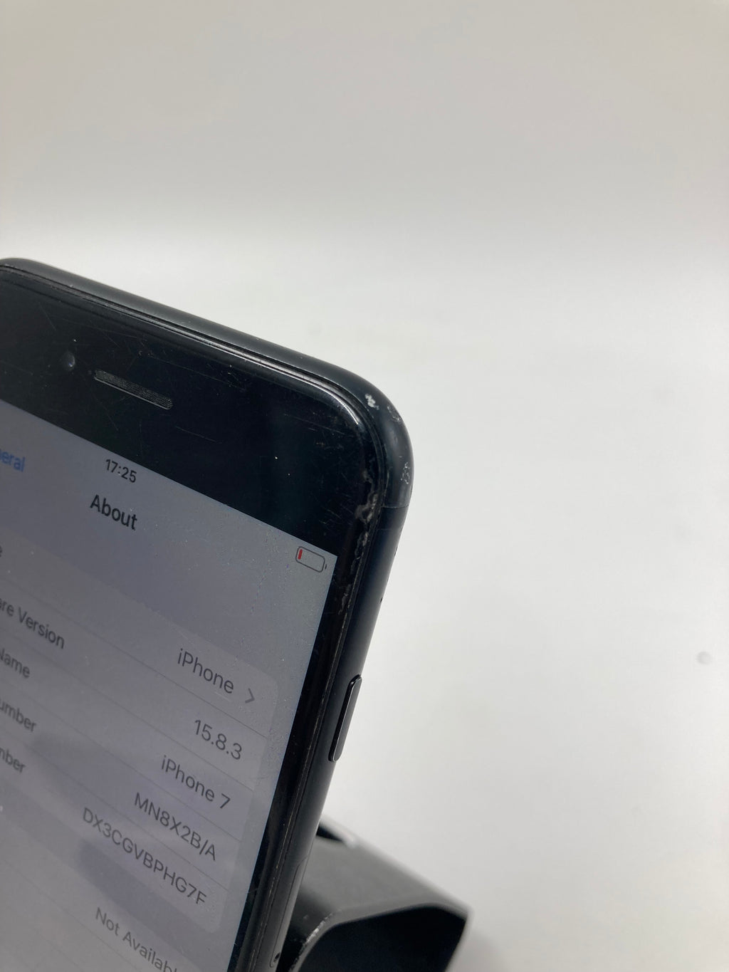 1x Apple iPhone 7 A1778 32GB Black - Battery Health 82%. Light Markings. Small Crack To Top Left Screen. 00049846