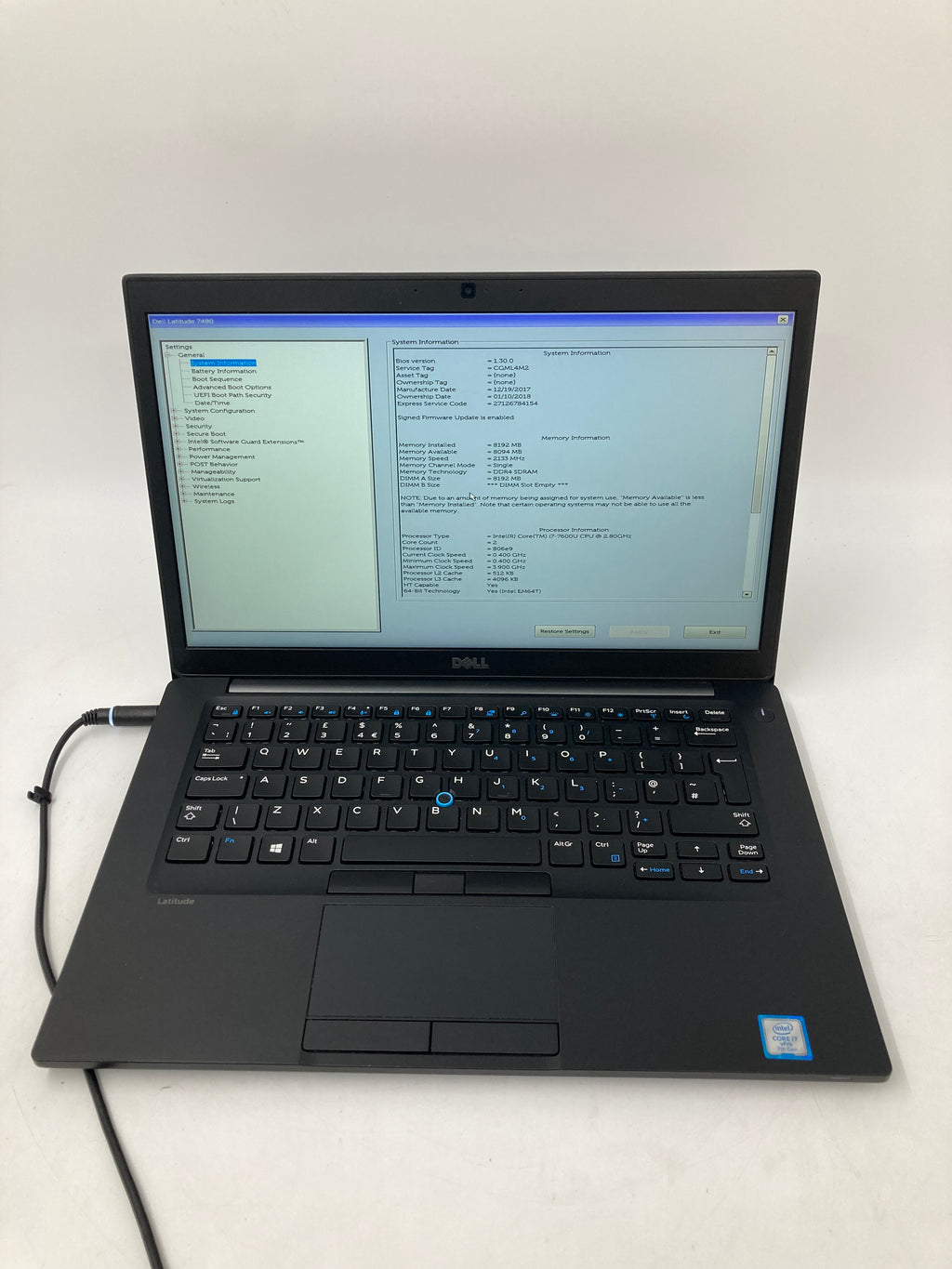 Dell Laptop Latitude 7480 14" i7 7th Gen 8GB RAM No HDD No OS *Spares*