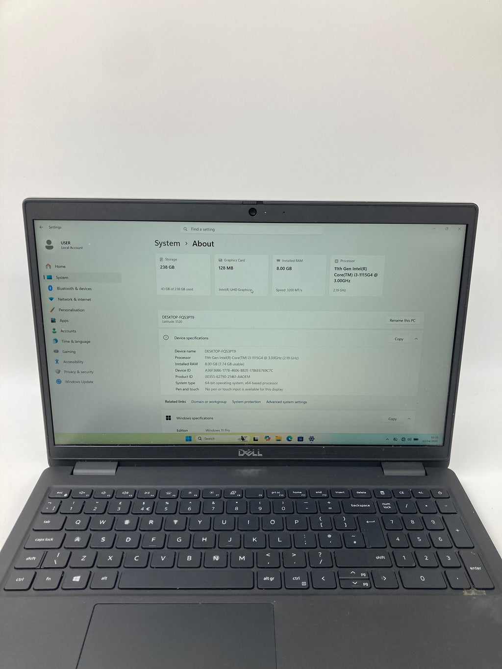 Dell Latitude 3520 | 15.6" FHD | i3 11th Gen CPU | 8GB RAM | 256GB SSD | W11 | Grade C