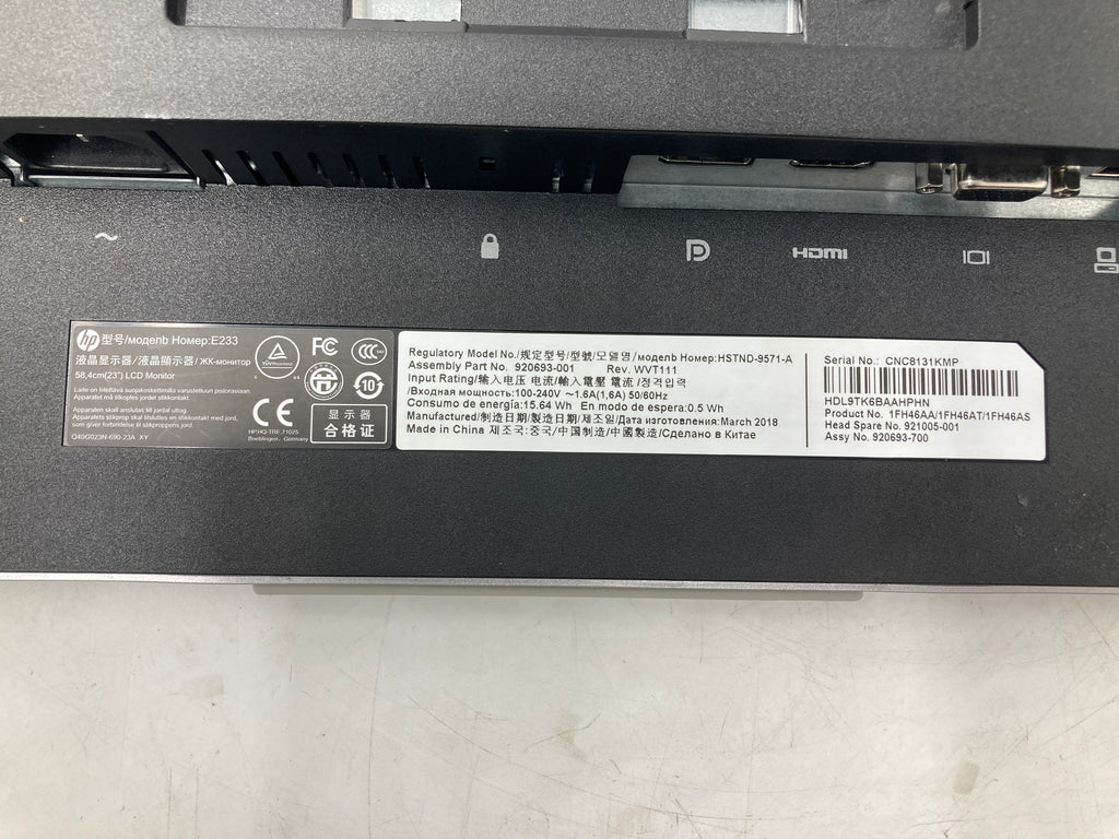 HP Monitor E233 23" Display IPS VGA Display Port HDMI No Stand Batch of 5