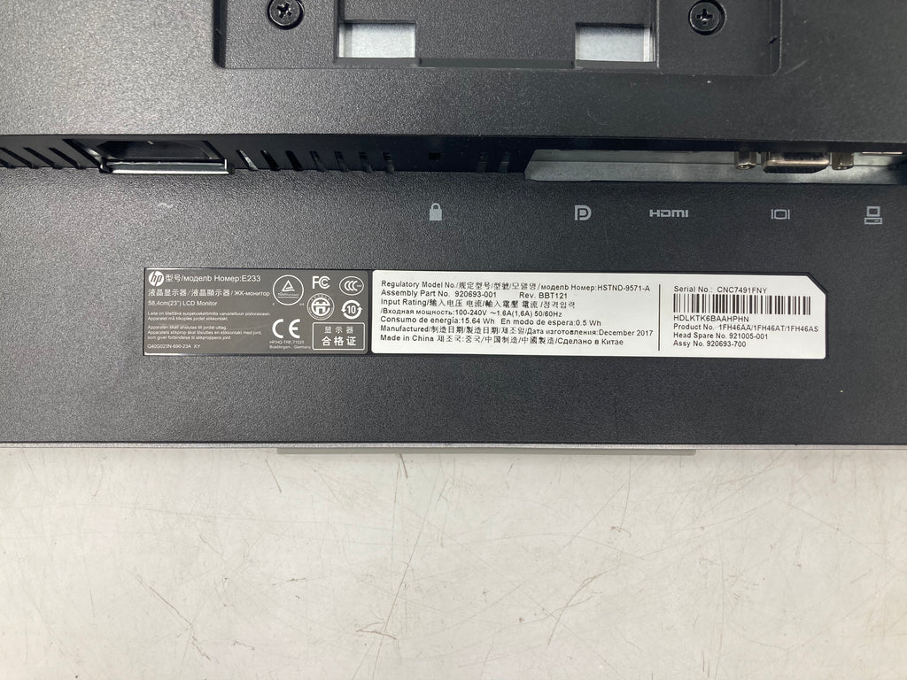 HP Monitor E233 23" VGA HDMI Display Port No Stand Batch of 4