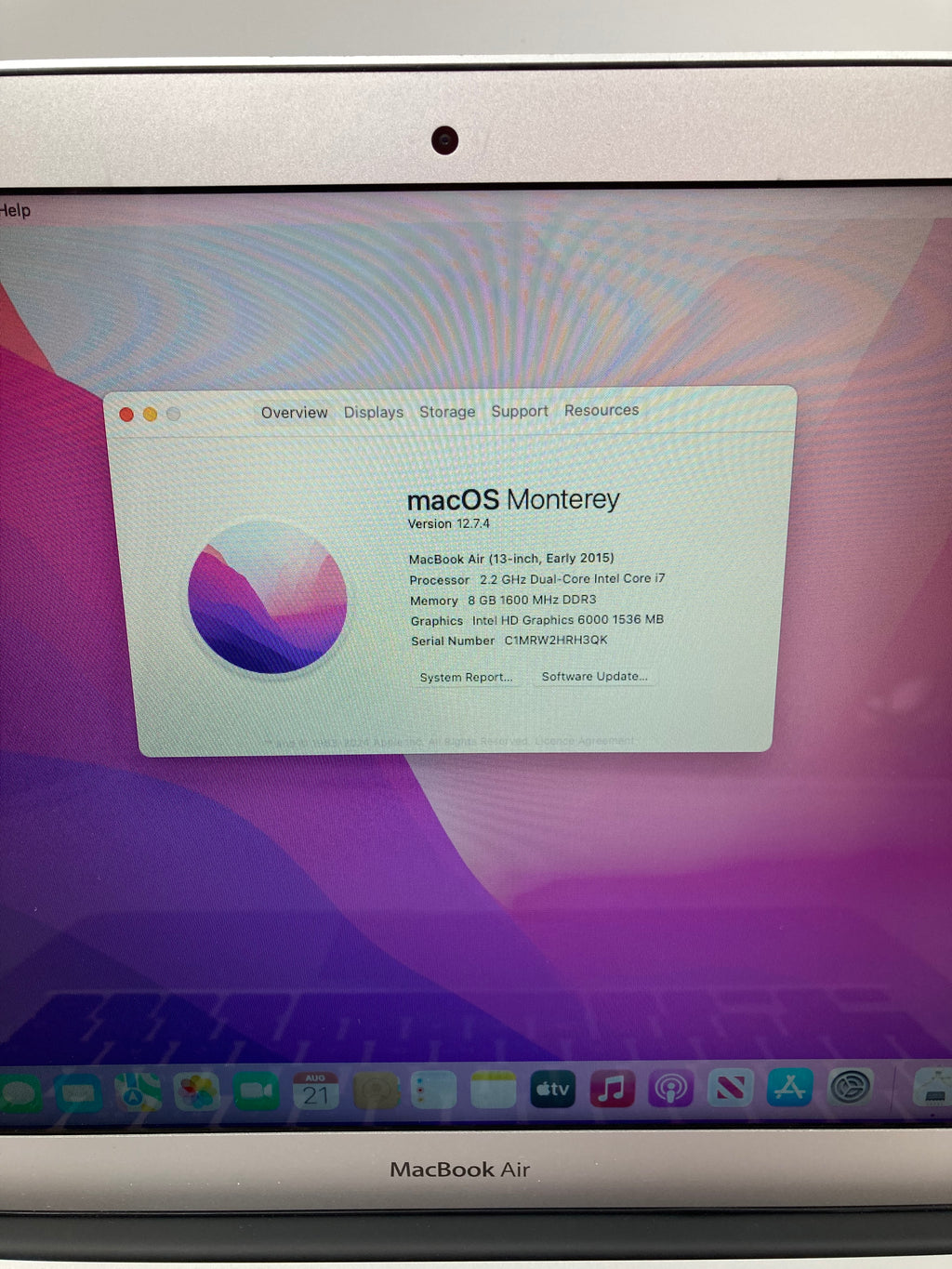 MacBook Air 13" 2015 A1466 EMC 2925 Intel Core i7 8GB RAM 500GB SSD Monterey OS